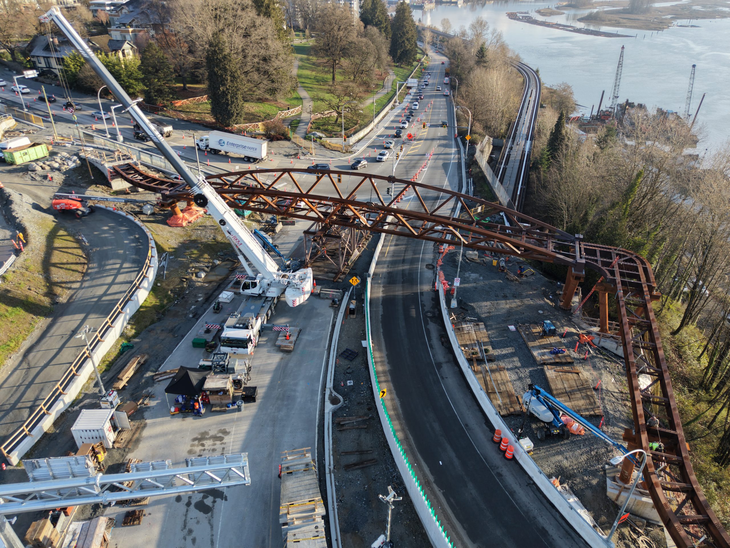 Construction of the E. Columbia Street multi-use path overpass in New Westminster (March 2026)Construction of the Highway 17 off-ramp in Surrey (March 2026)